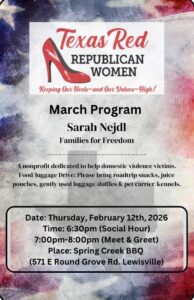 12mar6:30 PMTexas Red Republican Women | Sarah Nejdl with Families for Freedom