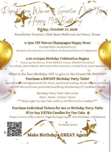 We, the Denton County Republican Party are dedicated to advancing conservative legislation, laws, principles, and values by growing the local Republican Party, increasing turnout for Republican candidates, and educating voters about the benefits of conservative Republican beliefs.